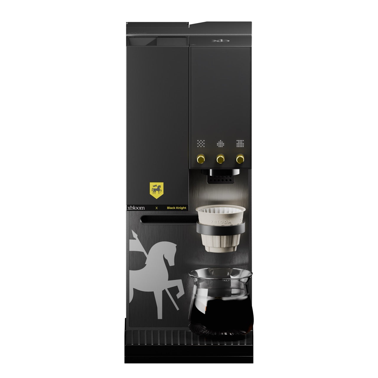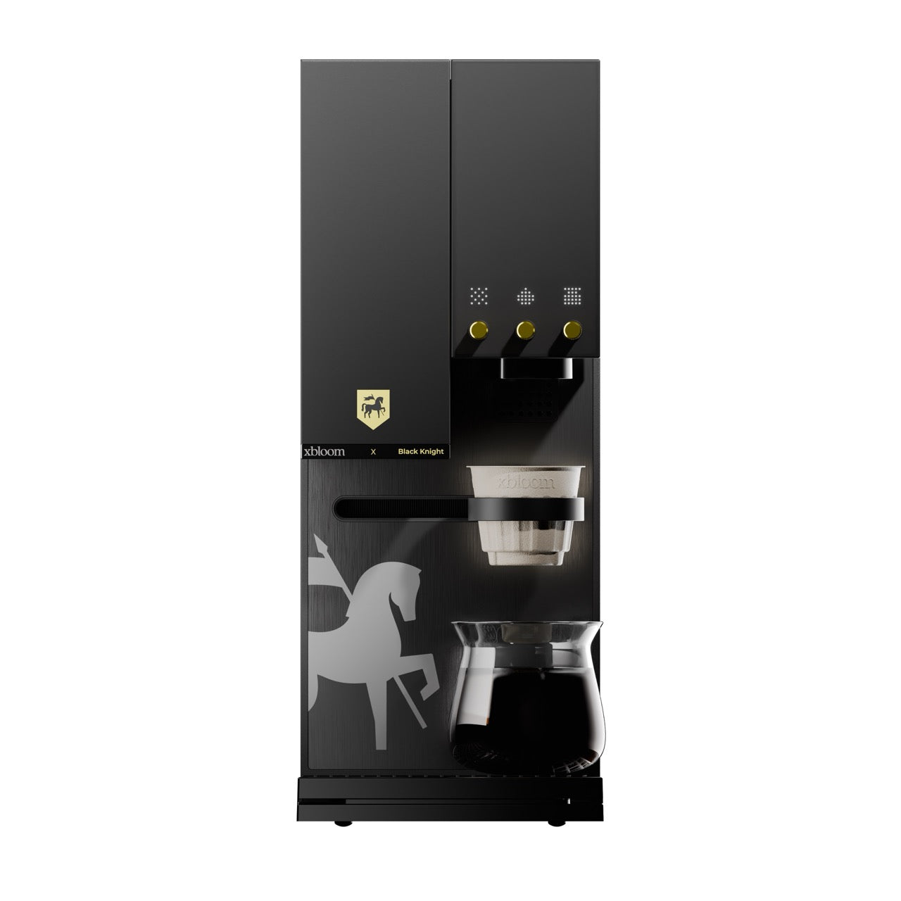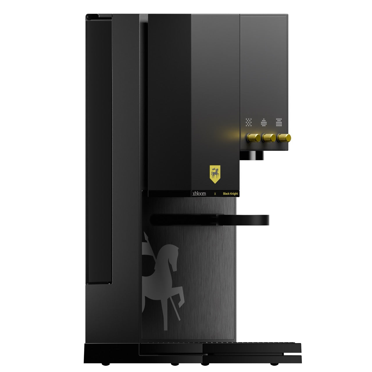 مكينة xBloom Studio بالتعاون مع محمصة الفارس الأسود، إصدار مميز يجمع بين التصميم الراقي والتقنيات المتقدمة لتحضير القهوة المختصة. يأتي بلون أسود مع أزرار بتصميم أصفر أنيق مع شعار المحمصة، ليعكس مكانة القهوة المختصة في ثقافة المملكة العربية السعودية.